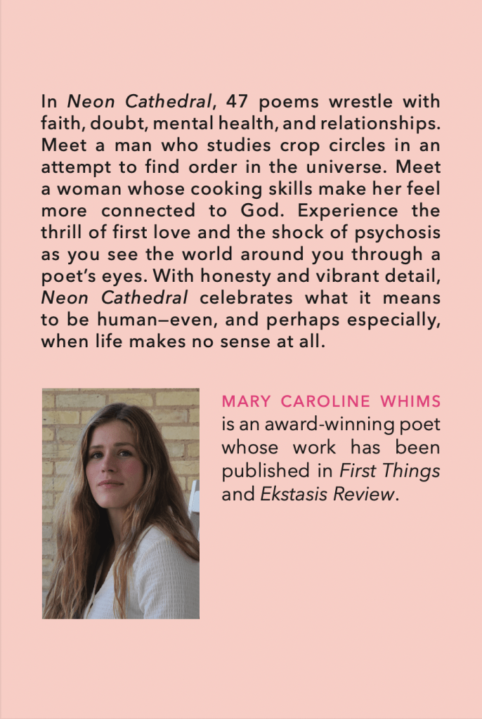Mary Caroline Whims’ first book of poetry, Neon Cathedral, is now available for purchase.